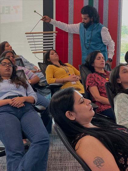 I run practical wellness sessions at your office using sound healing, laughter yoga, marma therapy, and easy desk yoga so your team learns simple ways to handle stress and feel better every day.