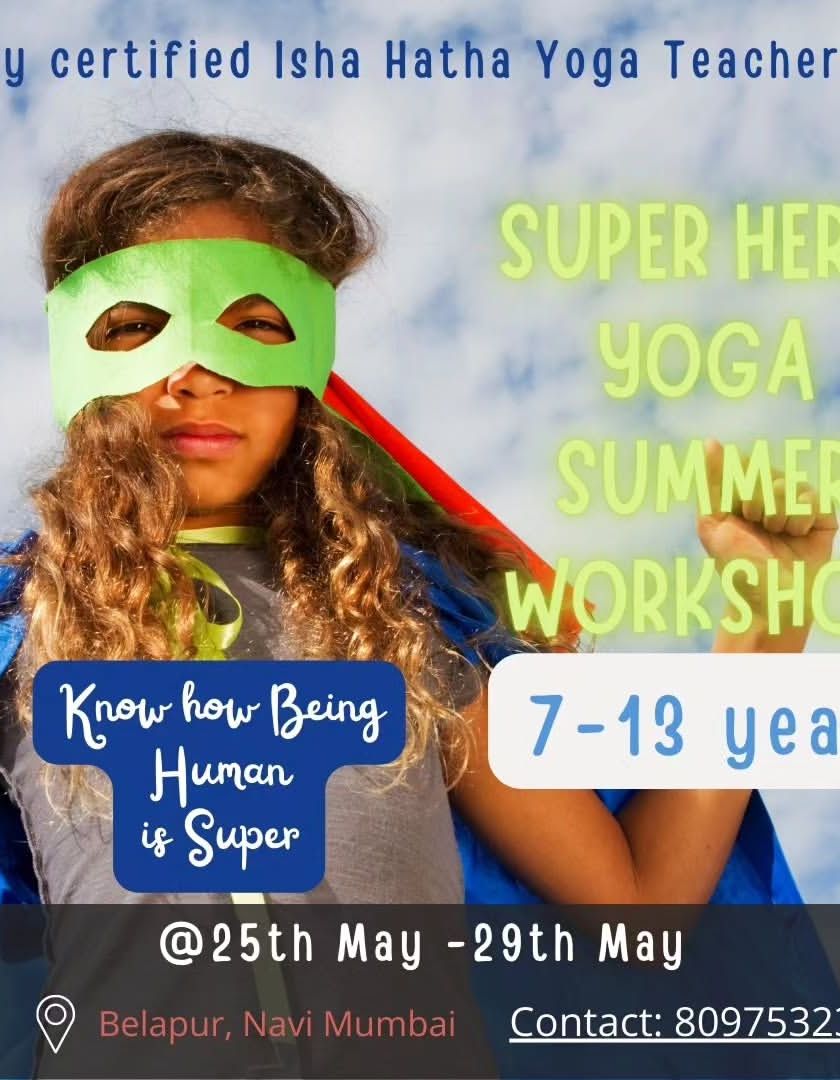 My Superhero Yoga workshops are designed to give children aged 7 to 13 lifelong tools for strength, focus, and joy. We combine authentic Isha Yoga practices like Surya Shakti and Thopukarnam with fun games and healthy snacks to create an empowering experience.