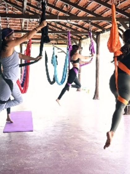 I teach aerial yoga using silks and hammocks to help students explore traditional yoga poses with added support and challenge. My classes blend my expertise as a professional ballerina with yoga therapy principles, focusing on flexibility, strength, and balance.