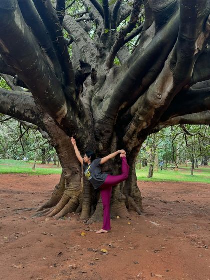 Hey, I'm Apoorva. Yoga for me is more than just a certificate, it's how I live, thanks to all the gurus before us. Had a gut surgery recently - trust me, lying down for a week taught me that pausing isn’t giving up. I love sarees (Mysore silk is my jam), painting when I get time, and decking up for Varamahalakshmi Habba. Yoga, art, tradition - all mixed up in my life, finding joy in small things.