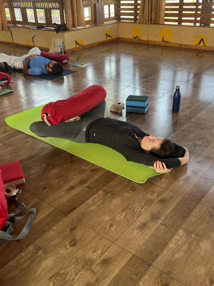 Morning classes are 90 minutes long, combining asana practice with pranayama and meditation techniques.