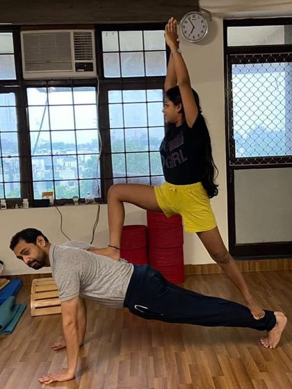 Yoga classes - online & in-studio - I teach Power Yoga for beginners, Advanced Acro Yoga, Partner Yoga, and core workouts in Rohini and online.