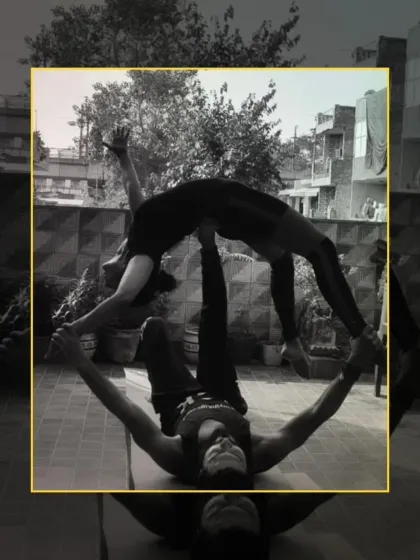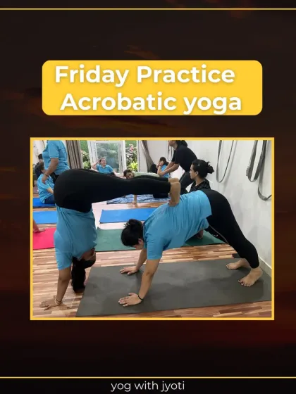 SAHYOG KE SAATH SADHANA (practice with teamwork). With “Partner yoga activities” and acro yoga, you build trust, strength, and balance with a friend. We learn to base, fly, and stretch deeper - it’s tough, but the bond you build is worth it.