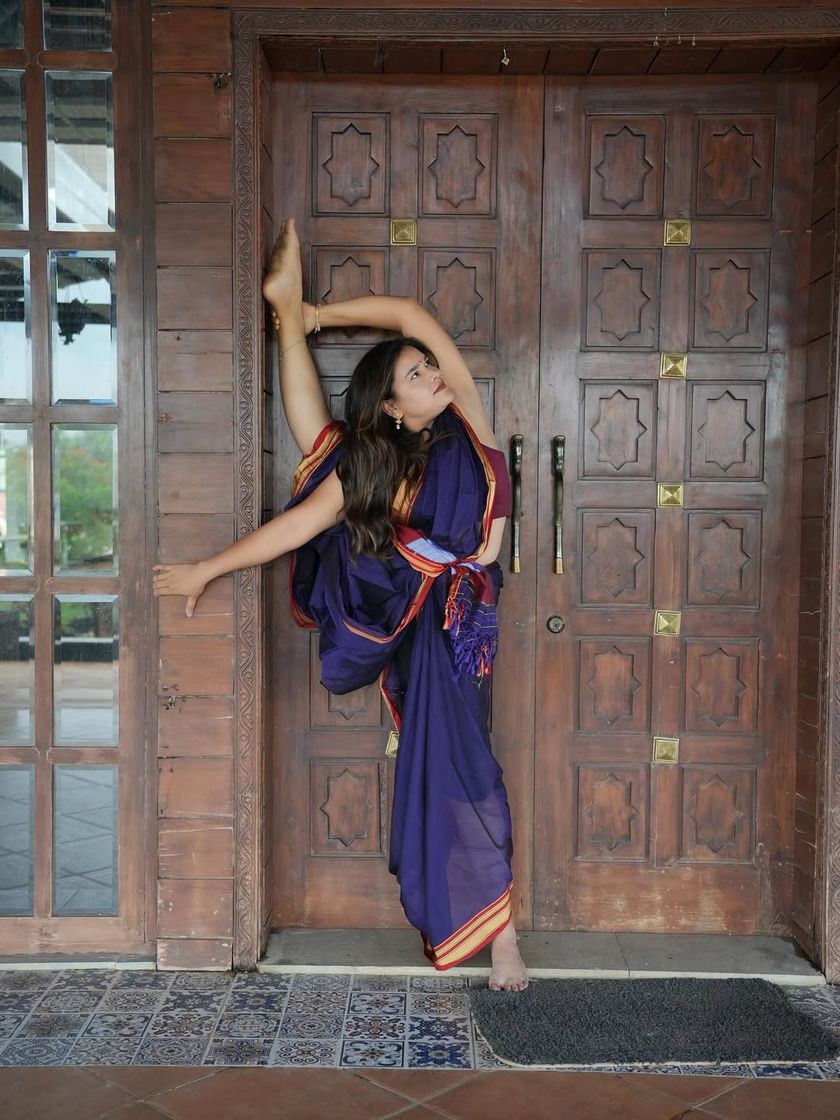 Your practice doesn't have to be confined to a mat or a studio. This cluster celebrates finding yoga in everyday life, whether it's in a saree, on a staircase, in a swimming pool, or surrounded by nature. It’s about finding balance, strength, and mindfulness wherever you are.