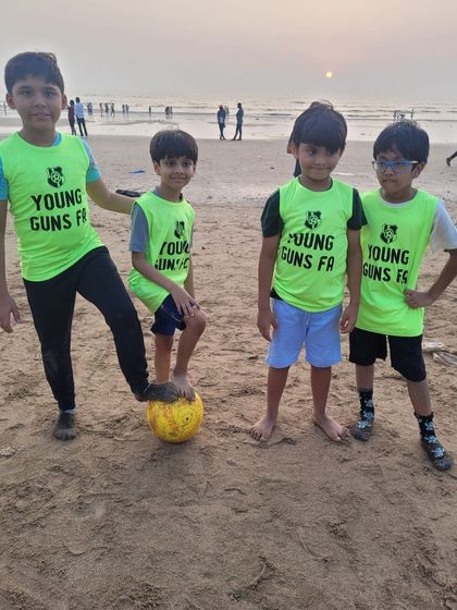 The fun doesn't stop at the turf! We also organize special events and playdates, like this awesome day of games on the beach. It's a fantastic way for kids to play, make friends, and enjoy sports in a unique setting.