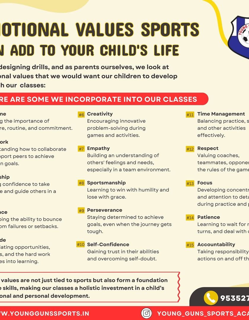 It's more than just a game for us. These visuals explain the core values and principles that guide our coaching, from focusing on the process over results to building emotional values like resilience and teamwork.