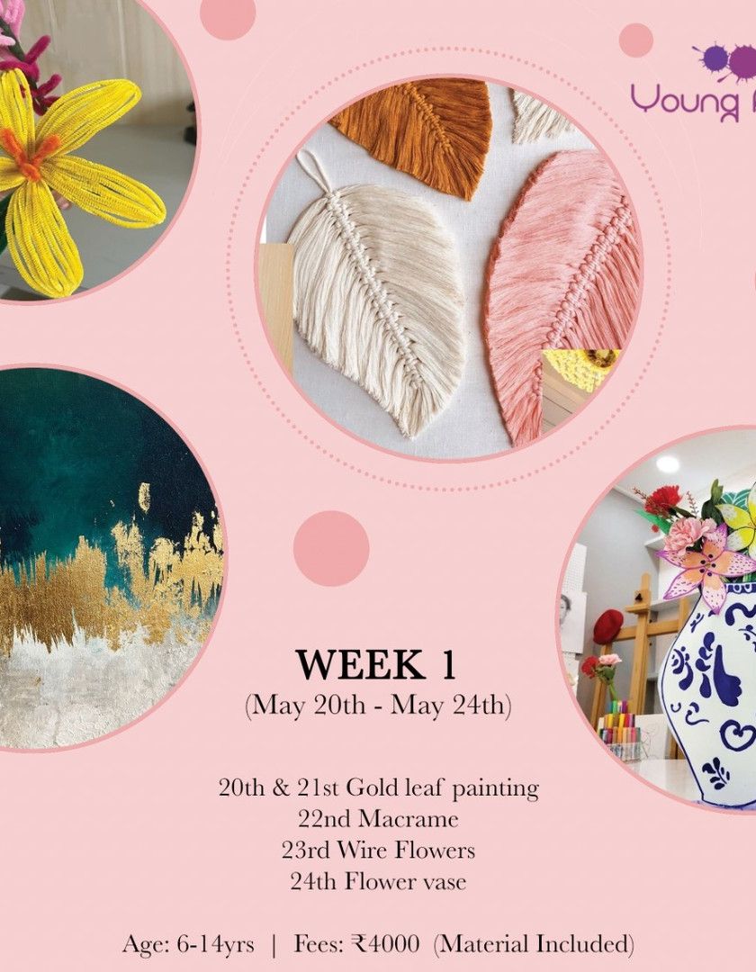 Here's a peek at the exciting weekly themes from our 2024 summer camp. Each week we explore new materials and techniques, from gold leaf painting and macrame to Pichwai art and 3D crafts, ensuring there's always something new to spark your child's imagination.