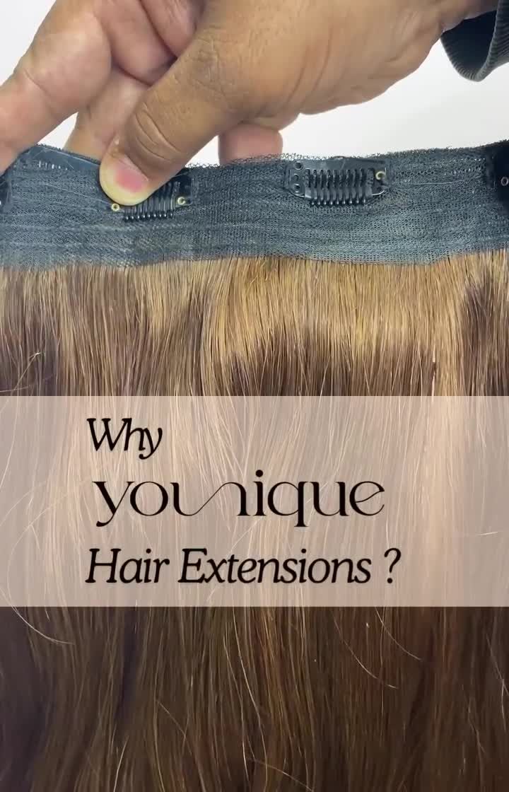 My clip-in extensions are the easiest way to add instant volume and length without commitment. Made from 100% human hair, they are easy to apply, style with heat, and blend perfectly with your own hair.