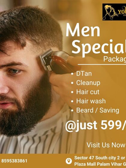 Men’s Grooming Too - Unisex hai bhai! Men ke liye special packages – haircuts, beard, D-tan, head massage – full pampering.