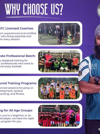 We run structured youth football development programs for kids (Under-7 to Under-17), focused on building love for the game and strong basics. Adults and corporate batches are all about balancing fitness and fun after work. If you're looking for personal attention, I also offer individual football coaching sessions with tailored drills to boost your skills.