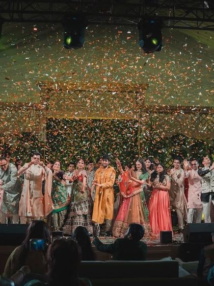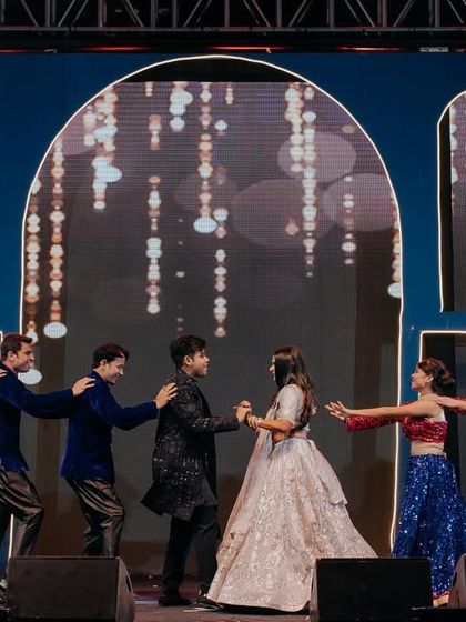 We design and produce your Sangeet as a complete show with custom themes, stage setups, special effects, and choreography for your whole family, handling everything from concept to execution anywhere you want.