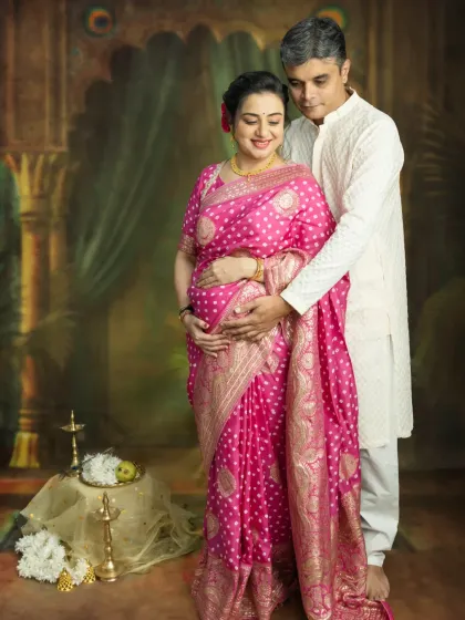 I love celebrating our beautiful Indian traditions. These studio sessions are perfect for capturing your pregnancy journey with the elegance of sarees, flowers, and classic props for memories that feel both royal and deeply personal.