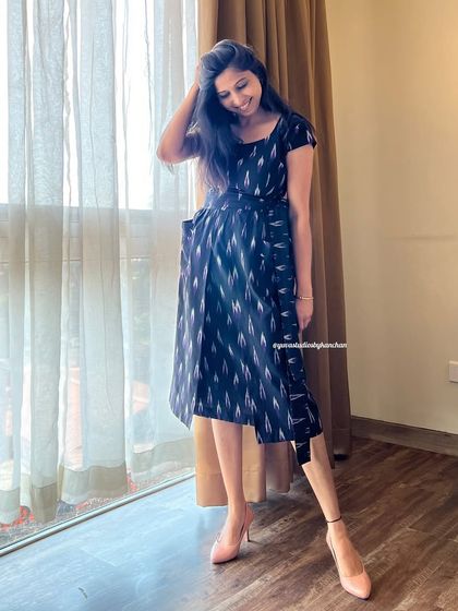 Hi, I’m Kanchan, running Yuva Studios out of Seawoods, Navi Mumbai. My studio’s small but it’s where I pour all my love for Indian fabrics. Pure cotton, Ikat, that’s my jam. I grew up loving our roots, so I make clothes that feel like home but look fresh. When folks from the Marathi scene, like Vanita Kharat or Bhadipa, wear my stuff, I get super proud. For Sarang’s 'भाड्याची birthday पार्टी' (Bhadipa's birthday party), I even made a special topi. I just want people to feel good in what they wear.