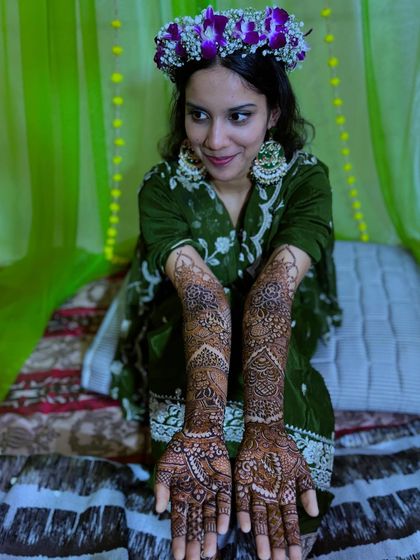 Home Bridal Mehendi Service - I come to you, make you comfy, and give your hands that glow for your big day.