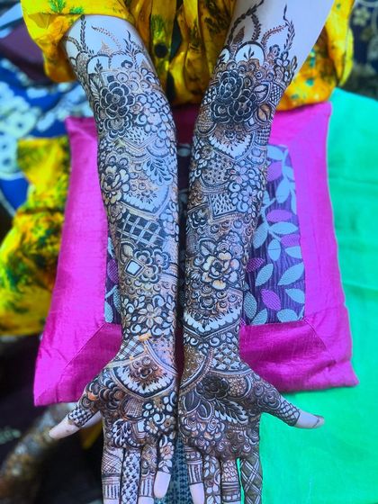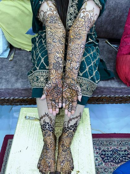 Brides seeking detailed, customized henna designs who value artistic excellence and traditional elements in their bridal mehendi.