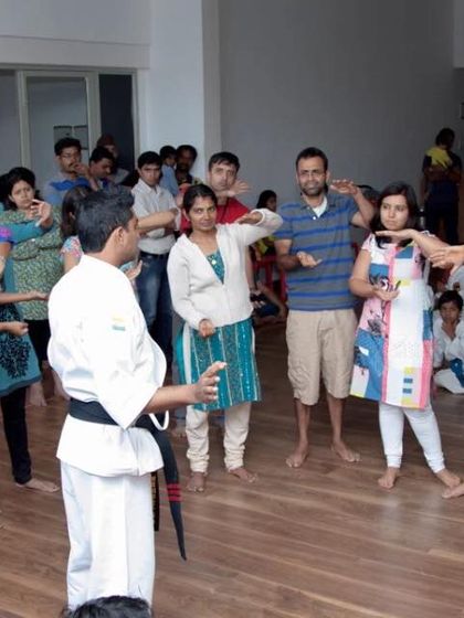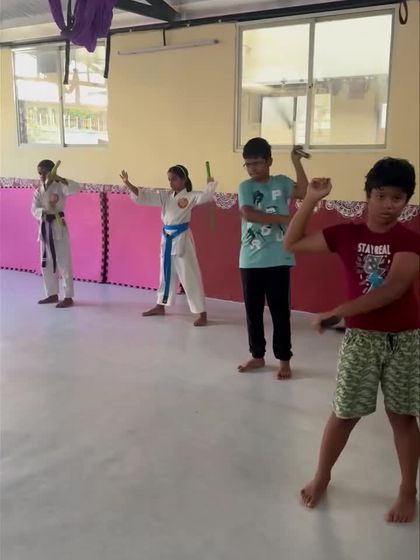 This is where the hard work happens. You will see my students, from young children to adults, practicing the core elements of Shotokan karate: kihon (basics), kata (forms), and kumite (sparring). I run classes at multiple locations including Play Arena, Baldwin Boys' High School, and our Haralur dojo.