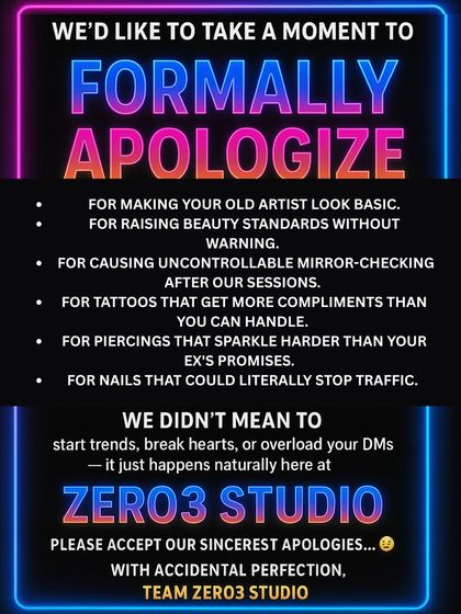 We believe getting a tattoo should be a fun and memorable experience. This section is for our studio's personality, including funny reels, client reactions, special offers, and memes. Follow us on social media to stay updated on our latest promotions and enjoy the lighter side of tattoo culture.