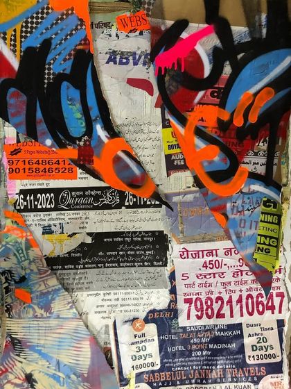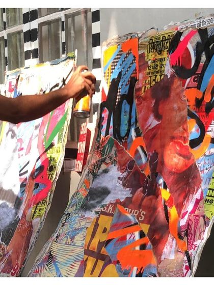 I make custom street-inspired art and installations using real city posters, graffiti, and layered textures, so you get a piece of urban culture for your space or event.