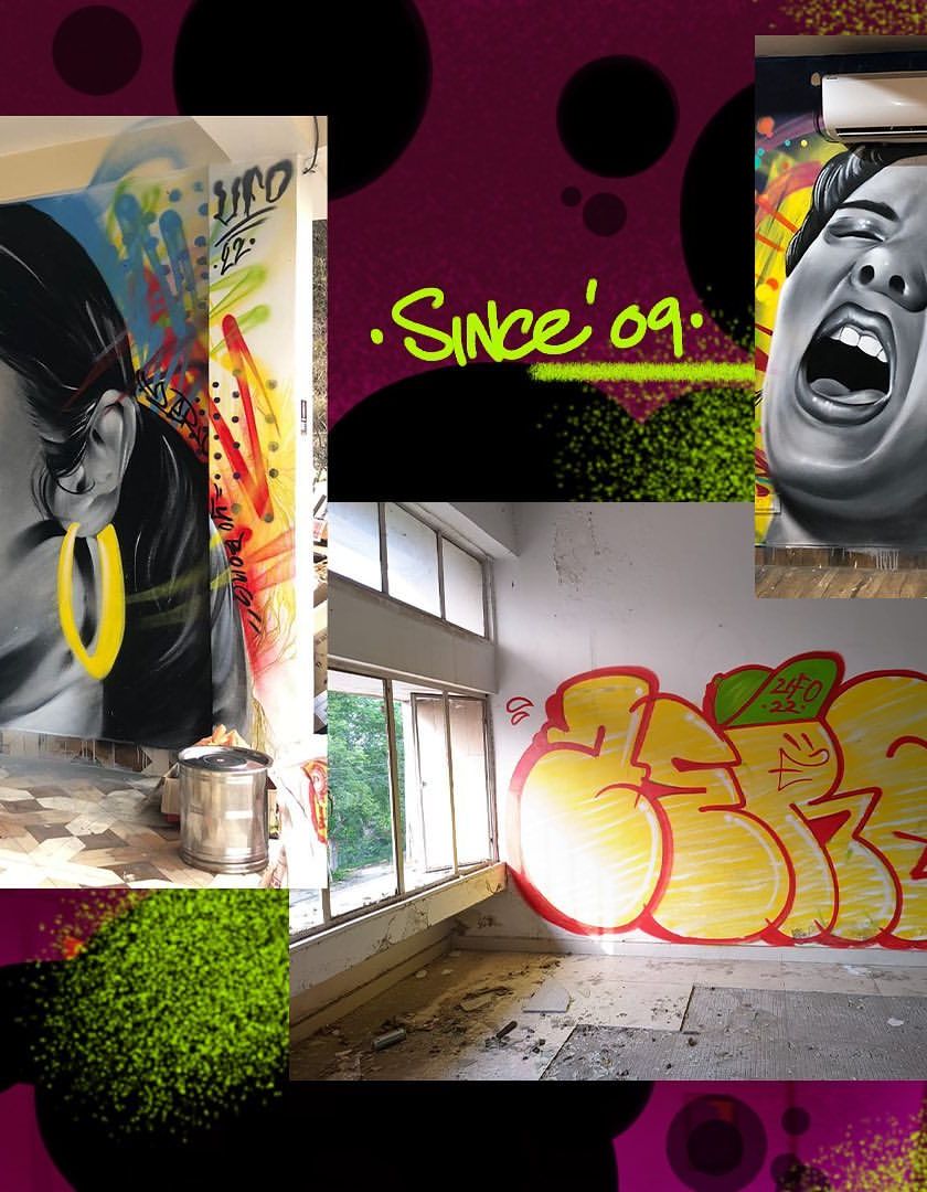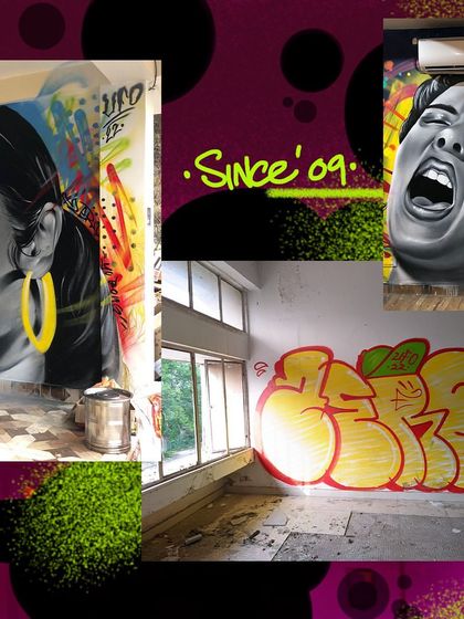 This is where it all started for me, on the streets. I do large scale custom murals and graffiti pieces for public and private walls. My style mixes classic wildstyle lettering with figurative and abstract elements.