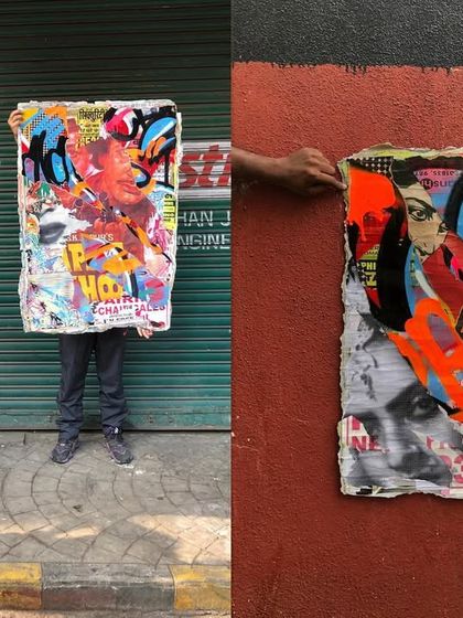 I capture the texture of city walls by layering old posters, film ads, and street notices onto canvas. Then I add my own graffiti, creating a piece of the street you can own. Each work is a unique story of urban decay and culture.