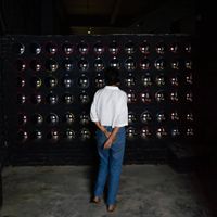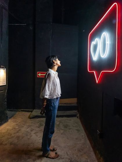 I create immersive experiences for galleries and events that go beyond a simple painting. Using materials like neon lights and mirrors, these installations make you think about our world, from social media to what's real.