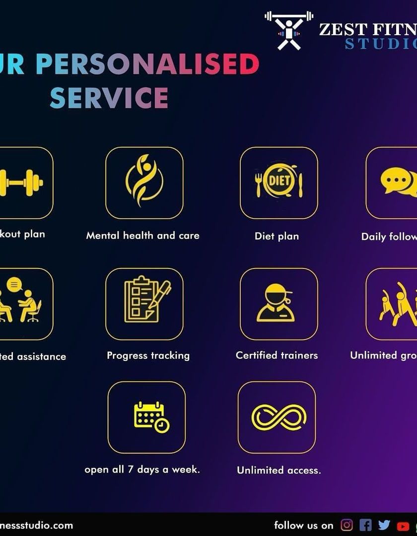 This is the first thing potential clients will see. We've selected our most powerful visuals to showcase the energy, community, and quality of Zest Fitness Studio, arranged to create maximum impact and encourage them to explore more.