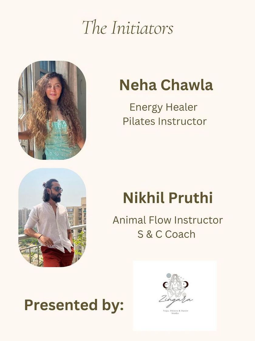 Get to know the faces behind the Zingara Tribe. I'm Neha, an Energy Healer and Pilates Instructor, and I work alongside Nikhil, our Animal Flow and S&C Coach, to create these transformative experiences for you.