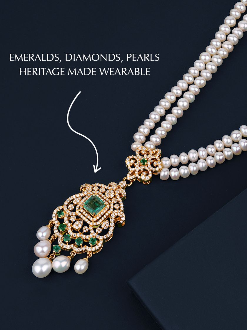 I design magnificent necklaces and matching sets meant to be passed down through generations. Specializing in traditional 'Takhtee' designs and modern interpretations, each piece combines pearls, emeralds, rubies, and diamonds into a wearable legacy for brides and families.