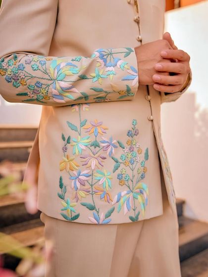 We make custom menswear for any occasion, from suits to sherwanis, with options like hand-painted jackets and detailed embroidery, all tailored to your fit and style.