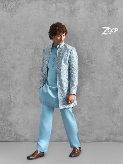 I design these pieces for life's most important moments. This collection features ready-to-wear kurtas, Jodhpuri sets, and Pathanis crafted from opulent fabrics with intricate embroidery and modern silhouettes, ensuring you look and feel exceptional for any wedding or celebration.